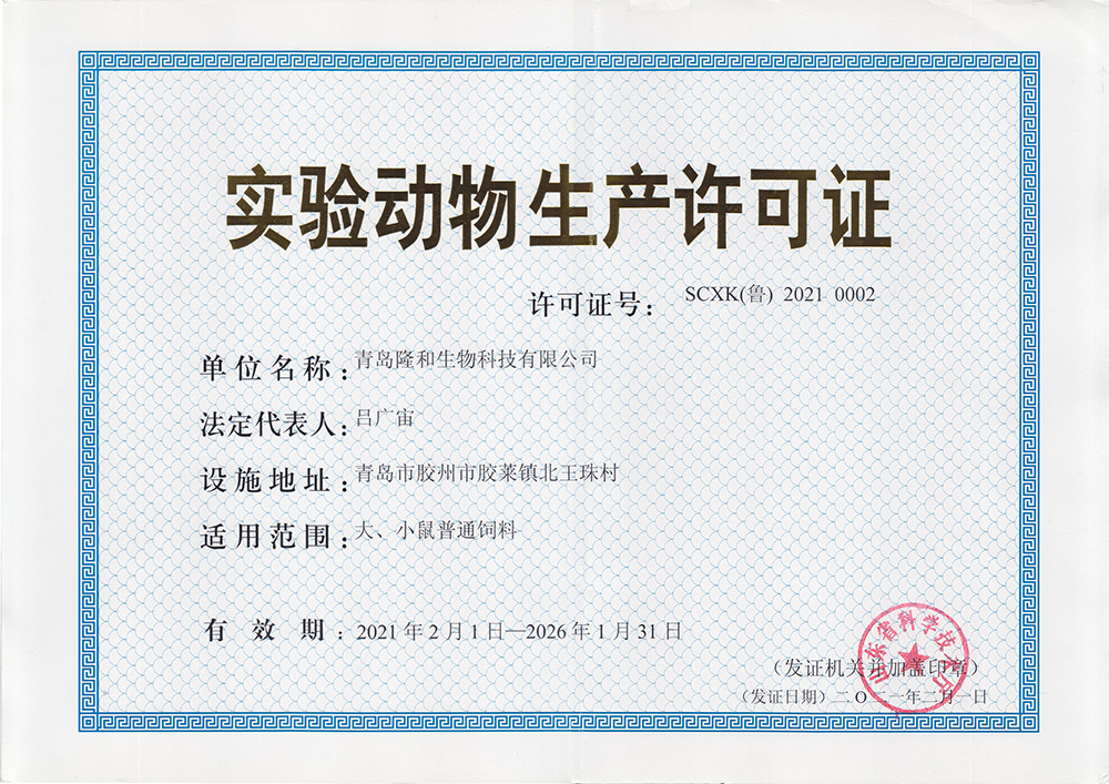 實(shi)驗動物(wu)生産許(xu)可證